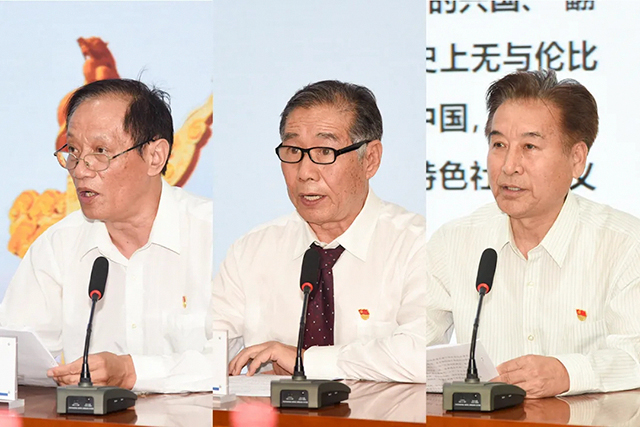 隨后,三家與黨同齡、與共和國同歲企業的老黨員代表展開了“恒天紅色記憶”環節。來自鄭紡機的胡德先、經緯智能的高志堅、青島宏大的韓慶華三位老黨員同志分別講述了各自企業賡續紅色基因、勇擔報國重任的一個個感人故事、一段段激情歷史。老黨員代表的發言,字字句句飽含著對黨的忠誠和感恩,一言一語飽含著對恒天紡機事業的深情熱愛,讓與會人員深受感染,倍受鼓舞,感受到恒天企業流淌著紅色基因的悠久歷史。正是因為有這樣一批批、一代代老黨員老同志,在戰爭年代,他們以生命寫下對黨的承諾;在和平時期,他們以奮斗譜寫出對黨的忠誠;他們默默付出,矢志不渝,在自己平凡而又偉大的崗位上始終滿懷熱情,為企業的發展傾注了畢生心血,用忠誠書寫理想,用行動砥礪擔當,我們的企業才能有今天的欣欣向榮、蓬勃發展。